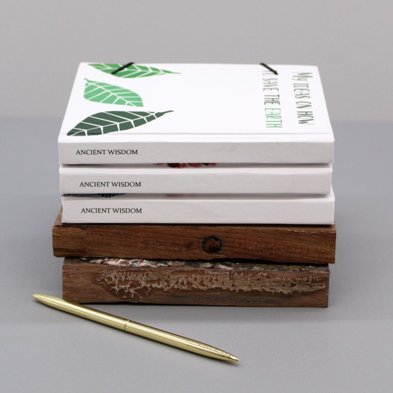 Vsaka beležka je ročno izdelana v Indiji iz recikliranega papirja, kar poudarja njen trajnostni značaj in avtentičnost.
