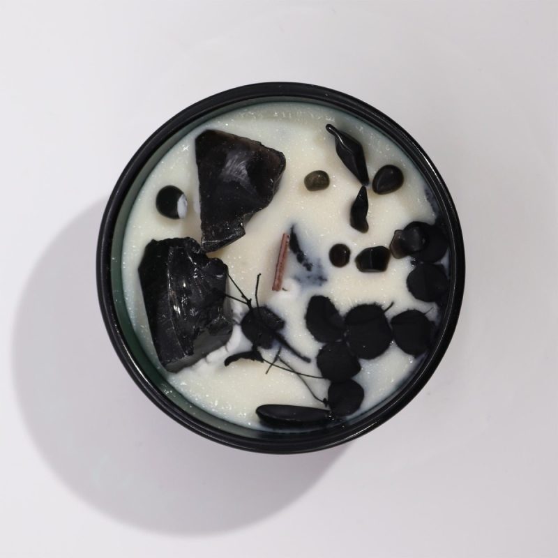V središču sveče se nahaja črni obsidian – zaščitni kamen jasnosti, fokusa in prizemljenosti. V kombinaciji z aromo cedre ustvarja vzdušje samozavesti, notranjega reda in miru, ki krepi misli in spodbuja odločne korake naprej.