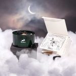 Vsaka sveča je ročno izdelana iz naravnega sojinega voska, z dodatkom naravnih kristalov in suhega cvetja, v elegantnem temnozelenem steklenem kozarcu z lesenim stenjem, ki ob gorenju nežno prasketa in ustvarja pomirjujoč zvok.
