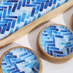 Servirni set Modrina združuje naravni mangov les in prefinjen modri vzorec, ki v dom vnese občutek svežine, lahkotnosti in mediteranske elegance.