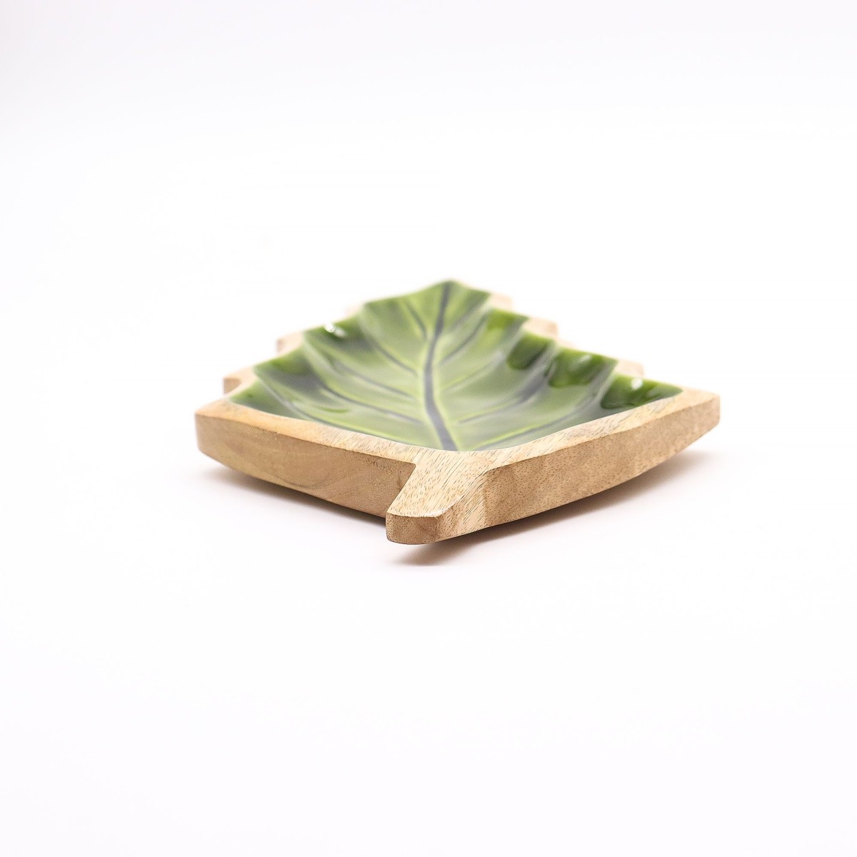Njena oblikovna zasnova v obliki lista jo naredi izjemno privlačno kot dekoracijo na mizi, servirno skledo ali shranjevalno posodico za drobnarije.