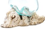 Rezultat je steklena skulptura, ki združuje naravno lepoto lesa in čistino stekla – idealna za vse, ki cenijo trajnostno umetnost in ročno delo.