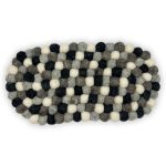 Ustvari harmonično in umirjeno vzdušje s sivo volneno ovalno podlogo iz filcanih kroglic (38 × 18 cm).