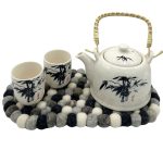 Vsaka podloga je ročno izdelana v Nepalu iz 100 % naravne volne, pri čemer je vsaka kroglica filcana in skrbno všita v kompaktno, toplotno odporno podlago.